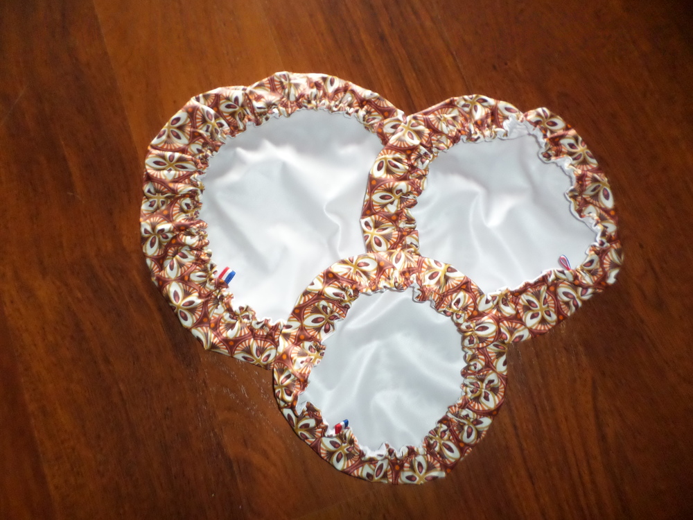 On adopte les Charlottes couvre plat  zéro déchets en coton enduit sur le dessus et en tissus PUL en dessous ( polyester avec membrane en polyuréthane laminé ) on remplace le papier alu et autres films alimentaires
