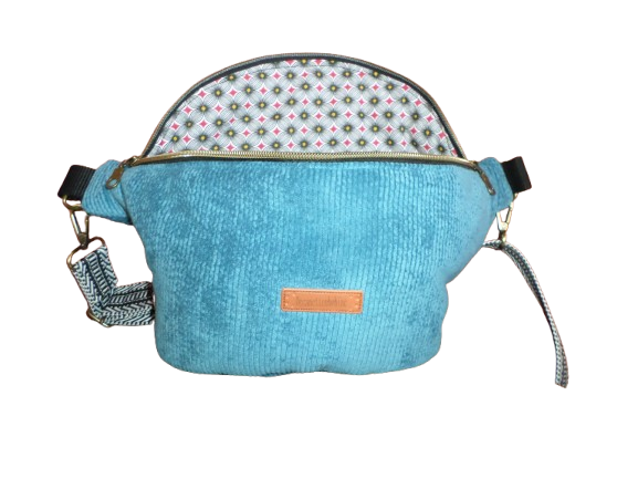 Ce sac banane est confectionné avec un tissu velours, il est entièrement molletonné pour une meilleure tenue. La doublure est un coton imprimé.