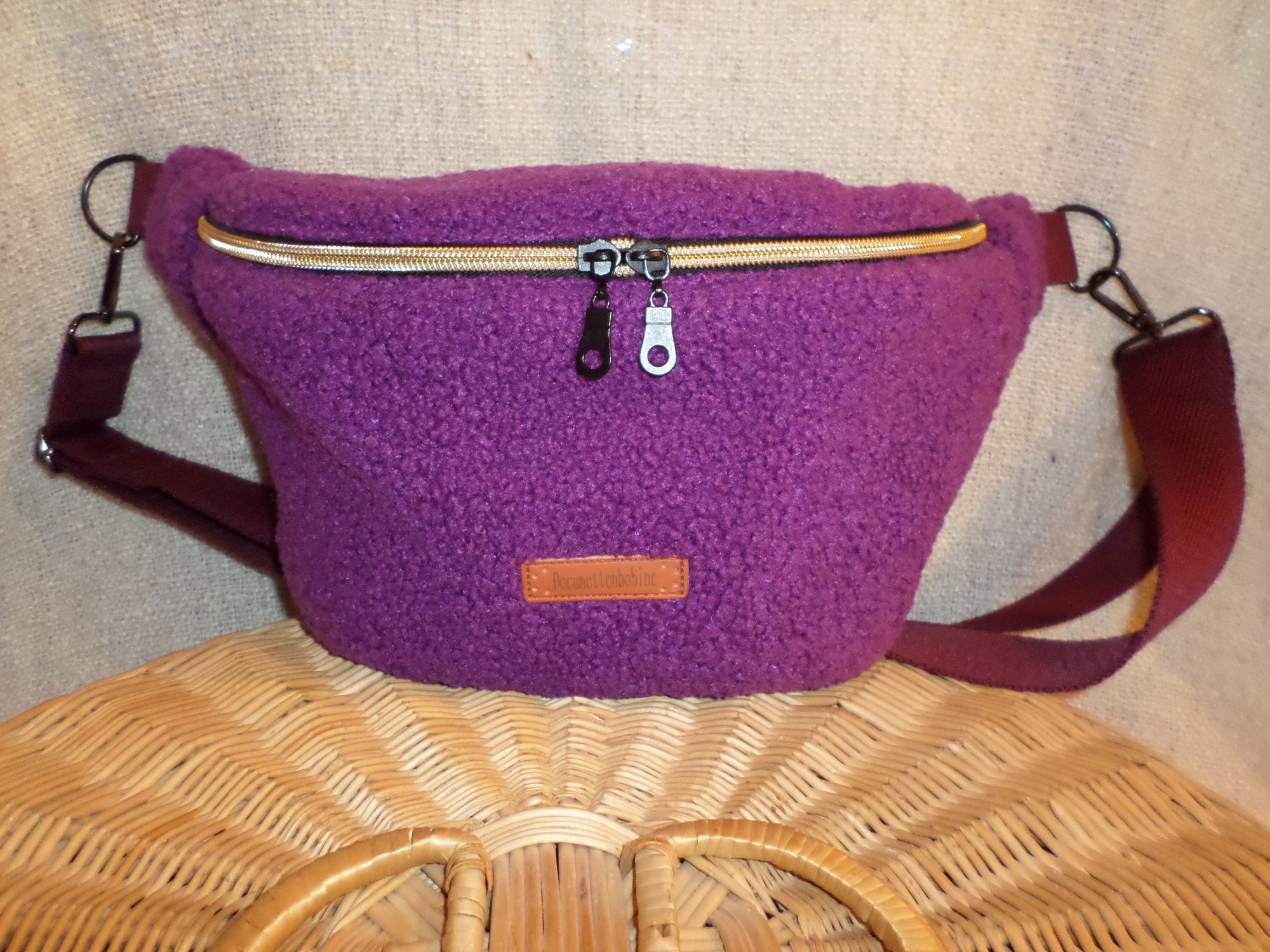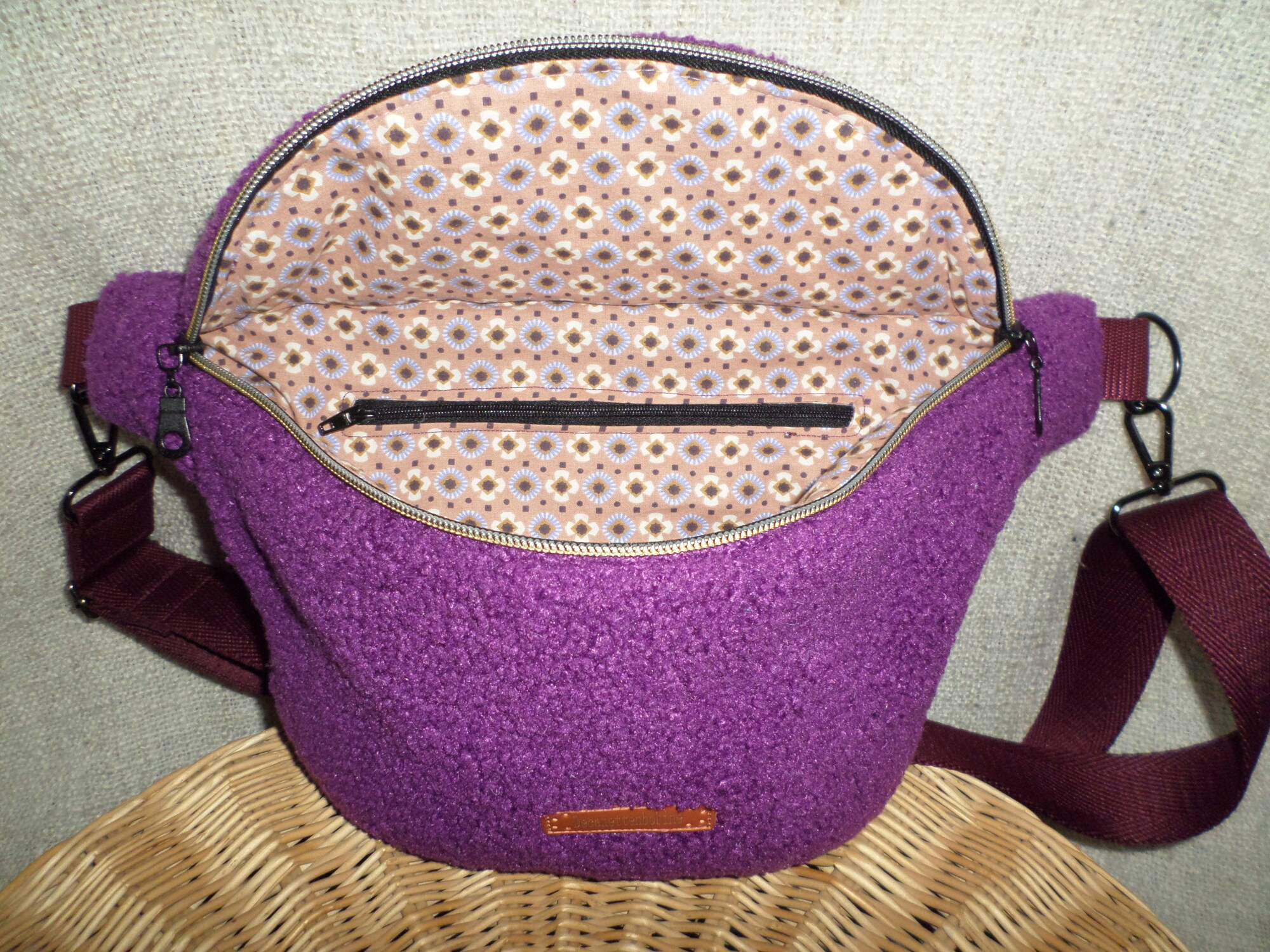 Ce sac banane est confectionné avec un tissu bouclette, il est entièrement molletonné pour une meilleure tenue. La doublure est un coton imprimé.