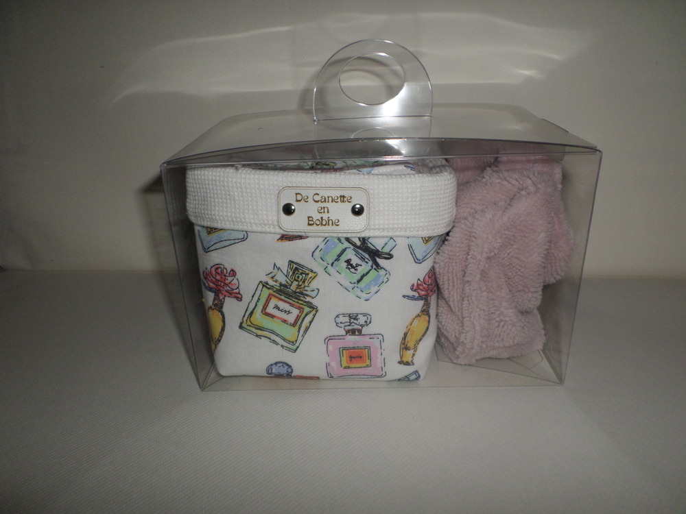 1 face coton imprimé et 1 face éponge bambou dans sa corbeille
