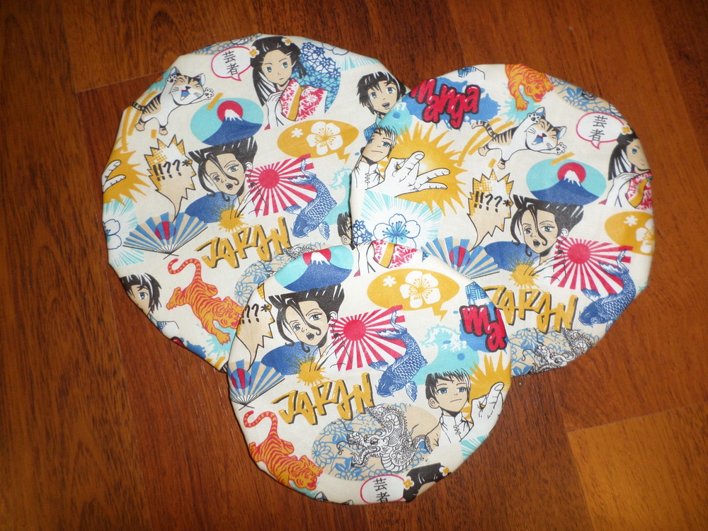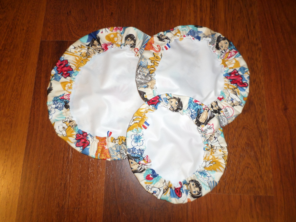 On adopte les Charlottes couvre plat zéro déchets en coton enduit sur le dessus et en tissus PUL en dessous ( polyester avec membrane en polyuréthane laminé ) on remplace le papier alu et autres films alimentaires