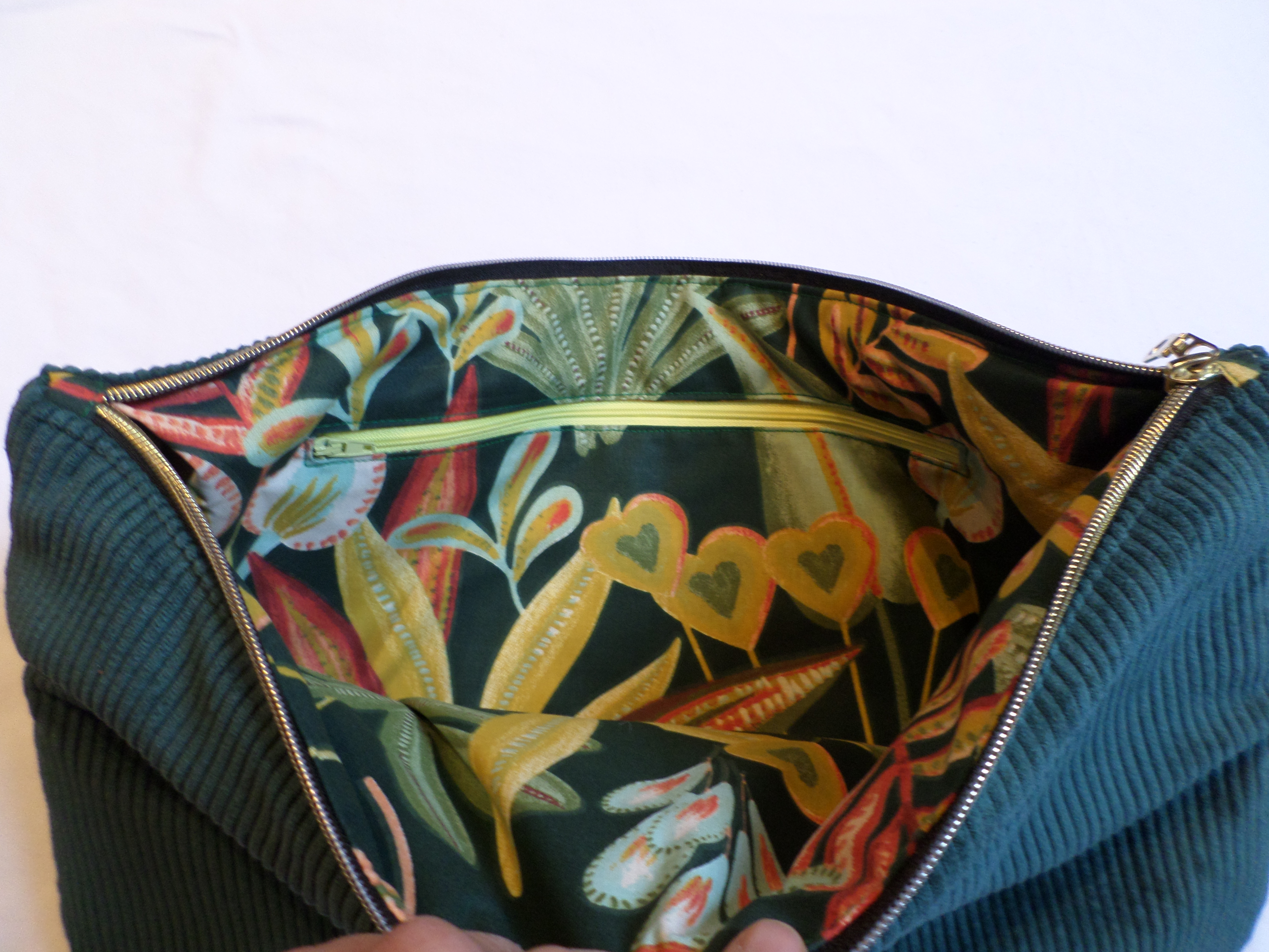 Elle est confectionnée avec un tissu velours et doublée d'un coton et d’une ouate assez épaisse. ( tissus en photos )