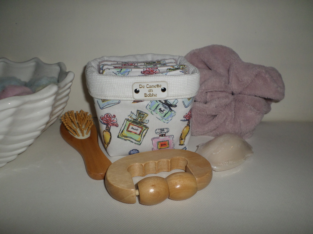 1 face coton imprimé et 1 face éponge bambou dans sa corbeille