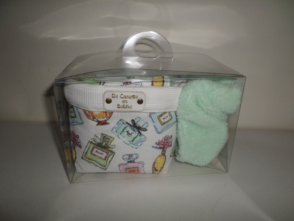 1 face coton imprimé et 1 face éponge bambou dans sa corbeille